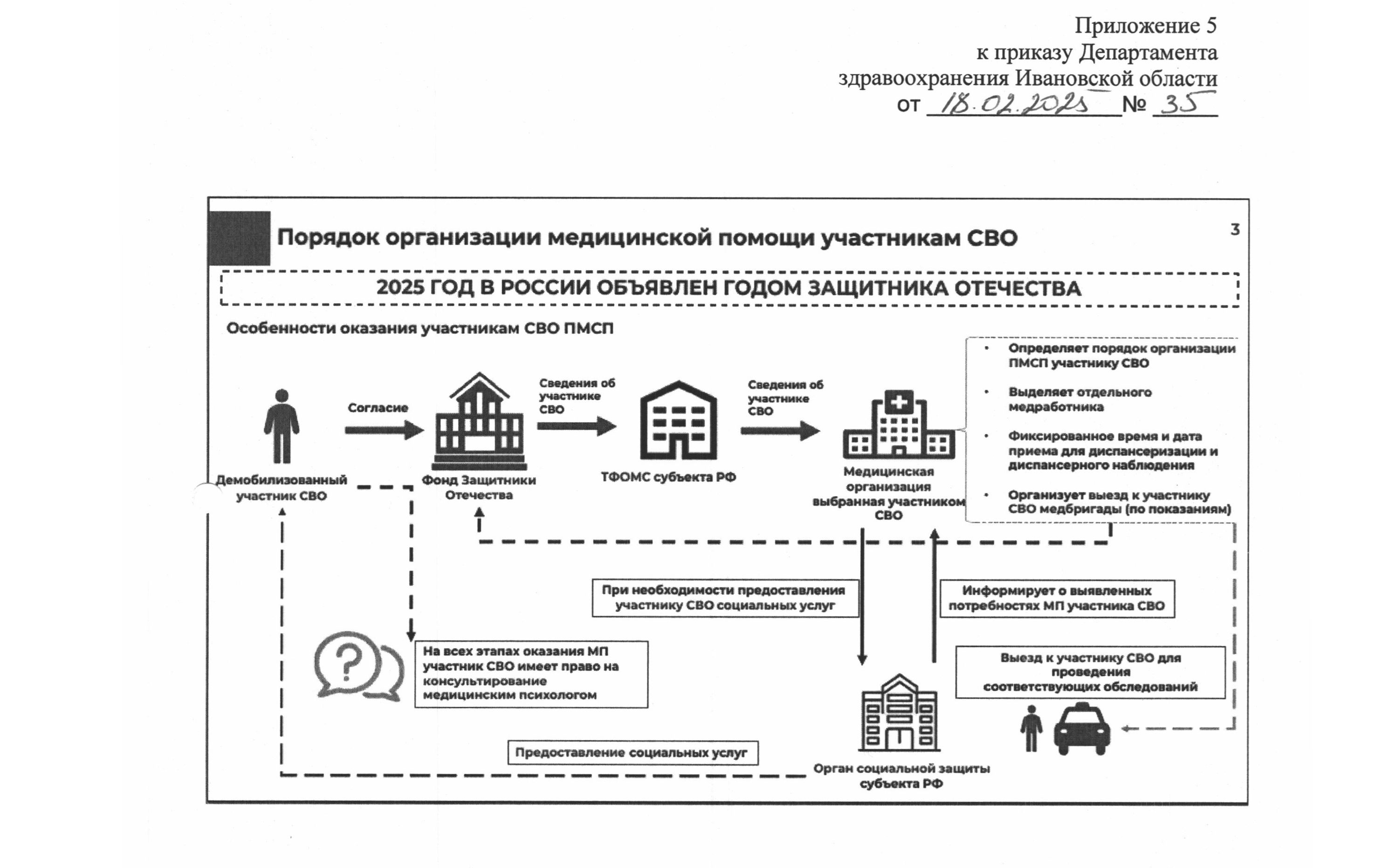 7.    В случае если медицинские работники при оказании участнику СВО медицинской помощи выявляют необходимость предоставления социальных услуг, эта информация передается в Департамент социальной защиты населения Ивановской области.